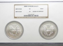 Pair Of GEM BU NGC Slabbed 2008-W American Silver Eagle One Oz. Coins – Reverse of 2007 (Rare Mint Error) and 2008 http://www.propertyroom.com/l/l/9771266 Read More