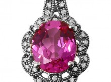 925 Silver Created Raspberry Corundum with Diamond Pendant, Retail $265 http://www.propertyroom.com/l/l/9761346 Read More