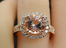 $2,499 Retail 3.32 Carats t.w. Diamond and Morganite Halo 14K Gold Diamonds on All Sides Read More